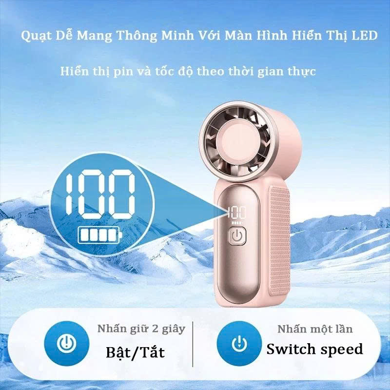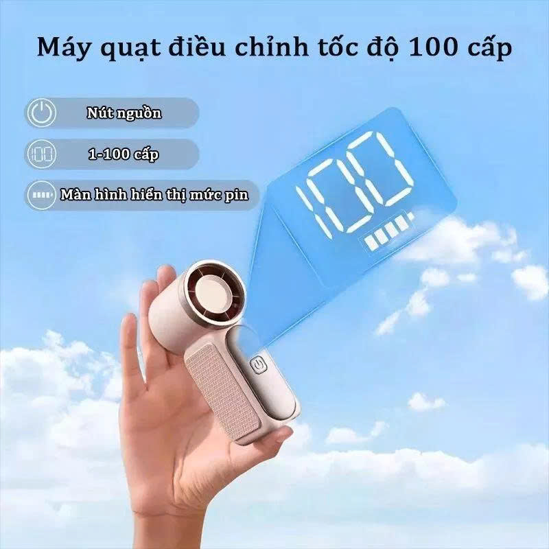 - Màn hình LED: Tích hợp màn hình kỹ thuật số hiển thị phần trăm pin còn lại và cấp độ gió hiện tại (thường từ 1 đến 100).