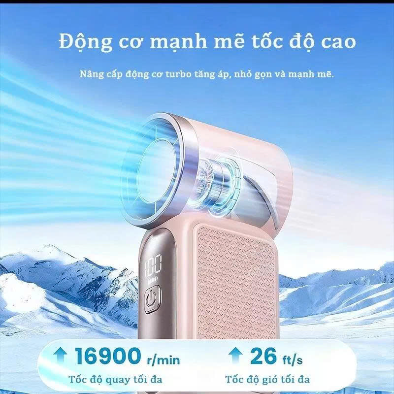 - Động cơ: Sử dụng động cơ không chổi than hoặc Turbo Jet có tốc độ vòng quay rất cao, có thể lên đến 14.000 – 19.000 vòng/phút, tạo ra luồng gió mạnh hơn hẳn các loại quạt mini thông thường.