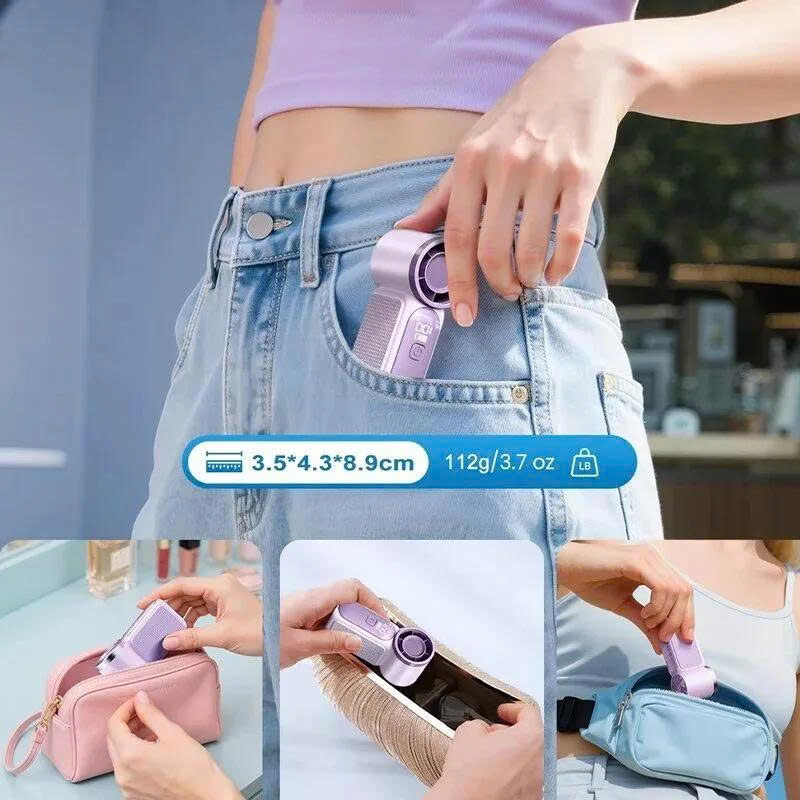 - Thiết kế: Kiểu dáng hình trụ cầm tay nhỏ gọn, kích thước chỉ tương đương lòng bàn tay, dễ dàng bỏ túi hoặc đeo cổ. Thân quạt thường làm từ nhựa ABS cao cấp.