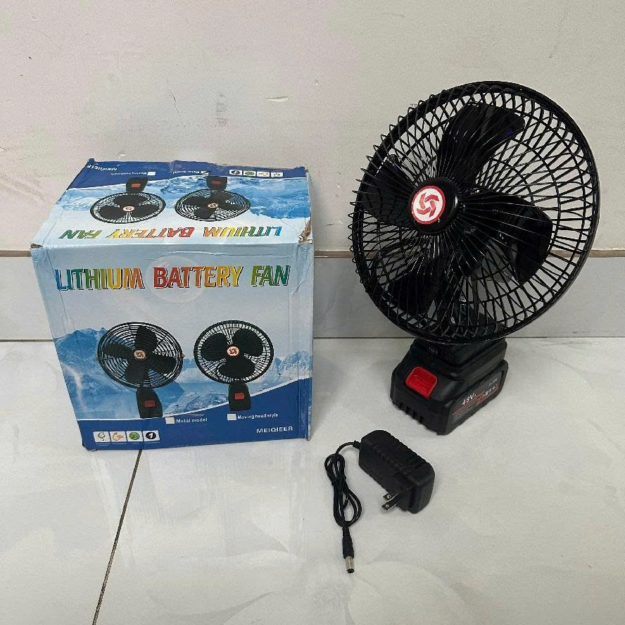 - Quạt tích điện để bàn lồng sắt dùng pin máy khoan 10 Cell