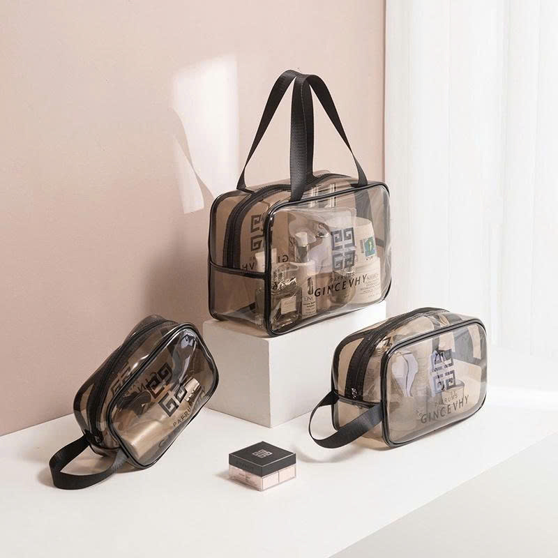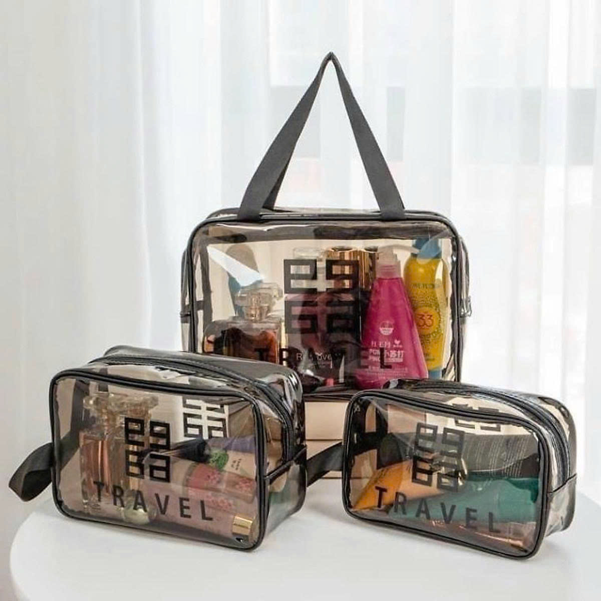- Bộ 3 Túi Trong Suốt Đựng Mỹ Phẩm Du Lịch với kiểu dáng sang trọng dùng đựng đồ make up cá nhân hoặc các dụng cụ trang điểm, phun xăm, nối mi....