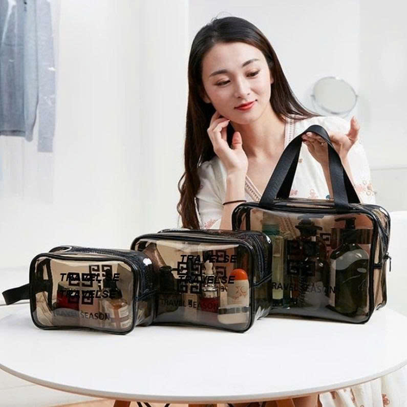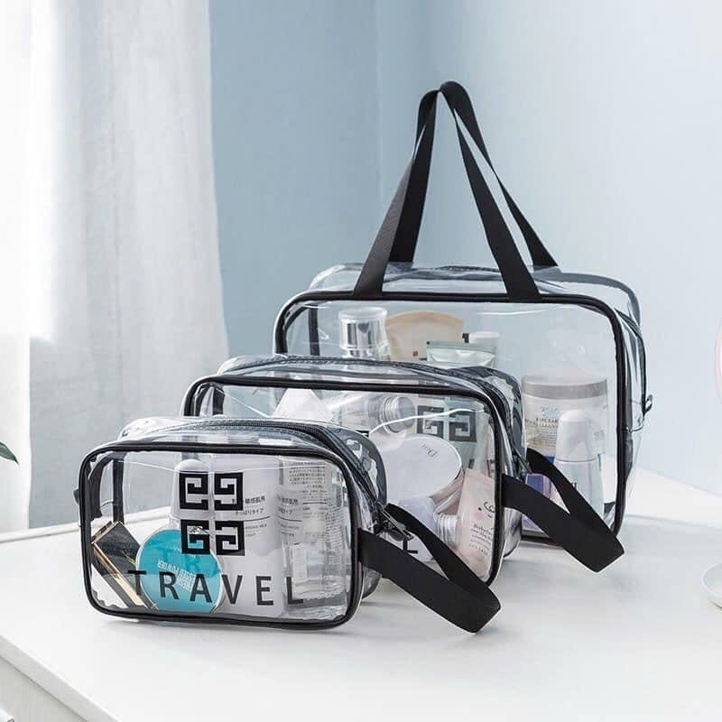 + Tên sản phẩm: Bộ 3 túi trong suốt đựng đồ, mỹ phẩm, túi du lịch chống thấm nước có tay xách