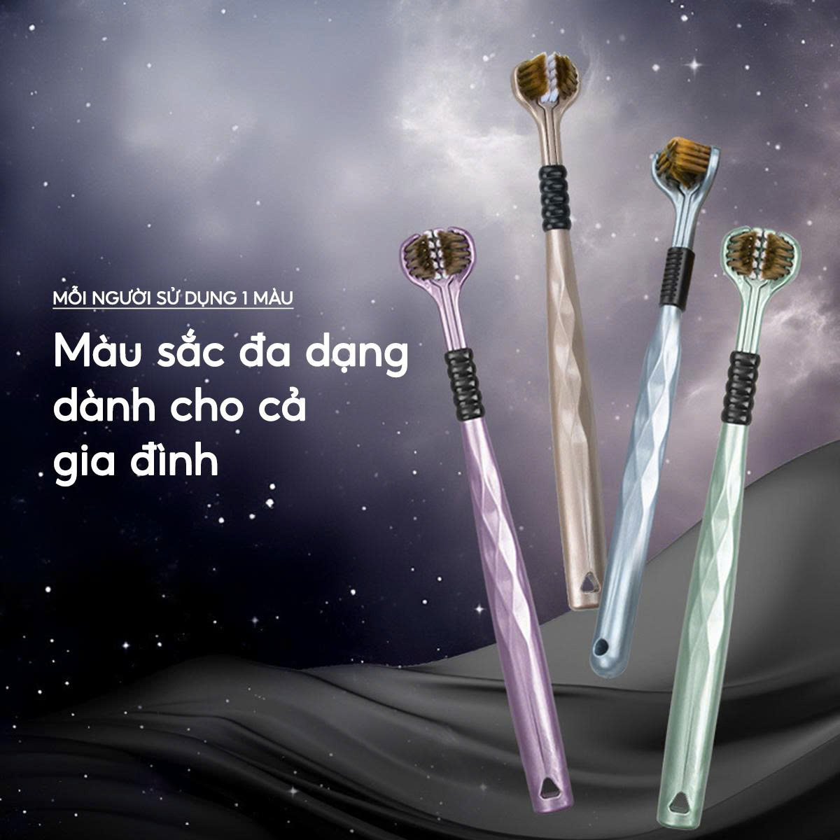 - 1 set bàn chải có 4 màu có sẵn để phân biệt bàn chải đánh răng với gia đình bạn