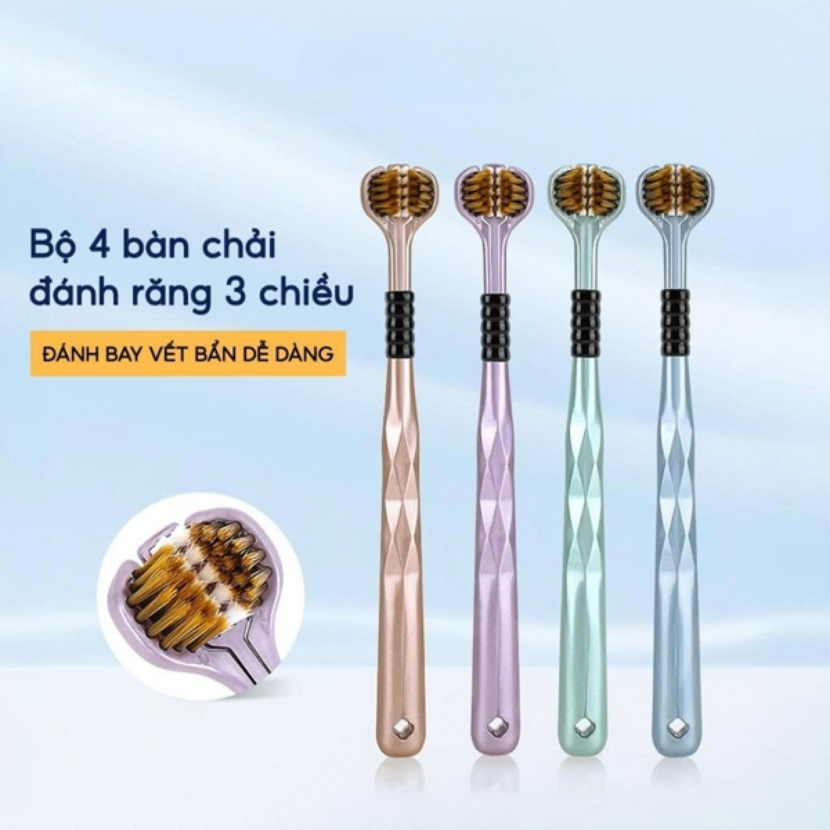 - Tên sản phẩm : Bộ 4 bàn chải đánh răng 3 chiều thông minh làm sạch êm ái