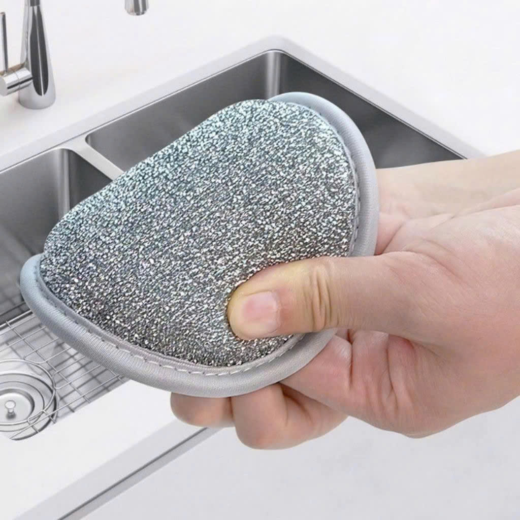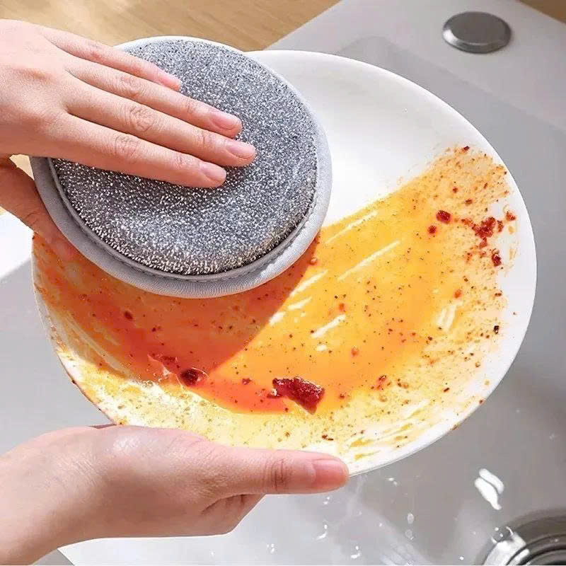 - Một mặt mềm giúp tạo bọt và rửa bát đĩa thông thường, HAI mặt nhám giúp đánh rửa xoong nồi, bồn rửa bát.