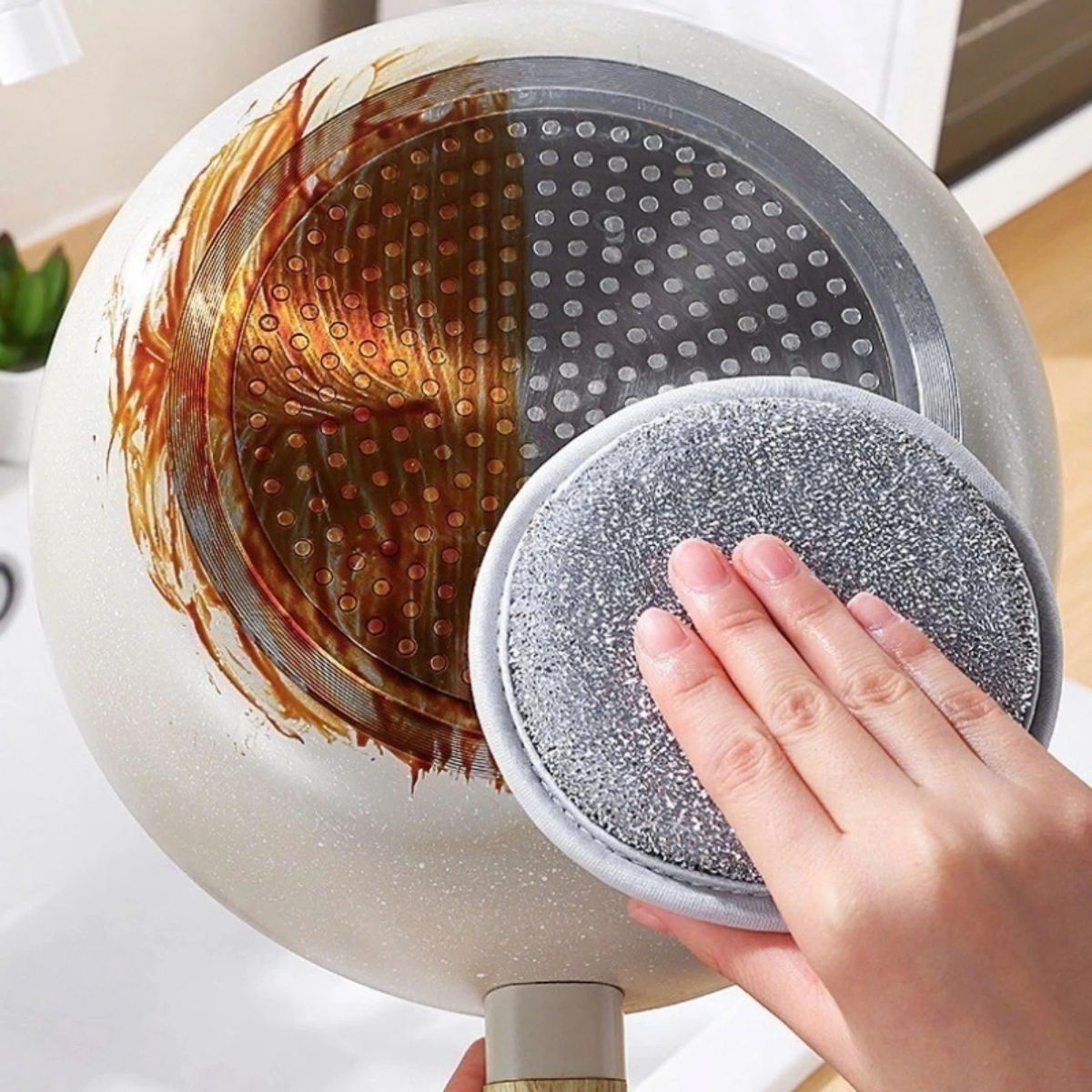 - Miếng bọt rửa chén giúp công việc rửa chén nhanh chóng, hiệu quả.