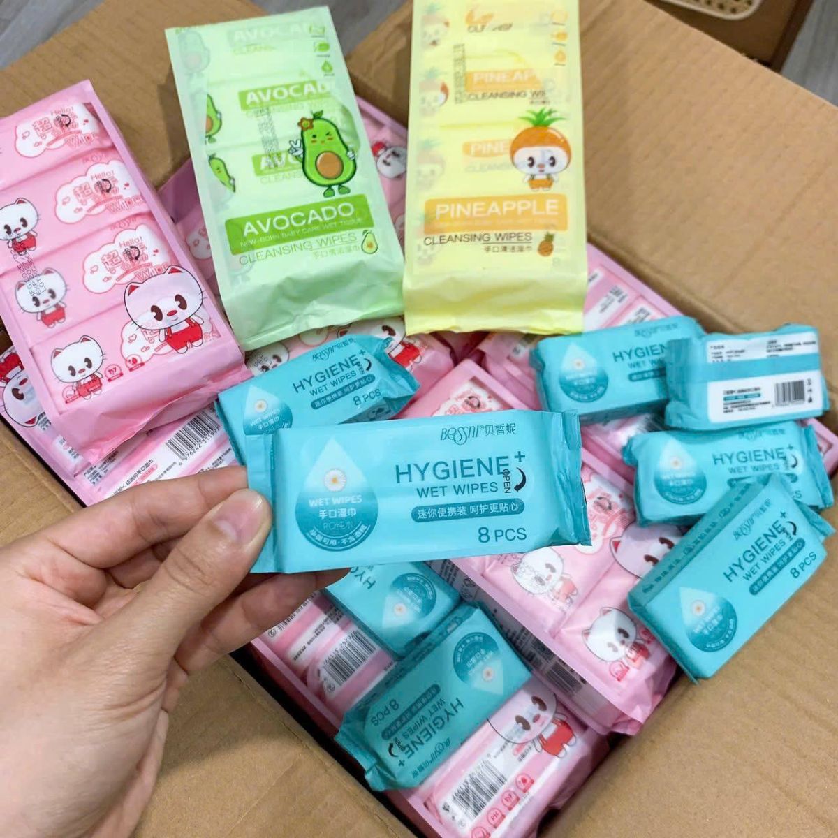 SET 8 GÓI KHĂN ƯỚT MINI SIÊU DỄ THƯƠNG