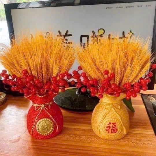 - Bình + lúa mạch+ trái đỏ nhé