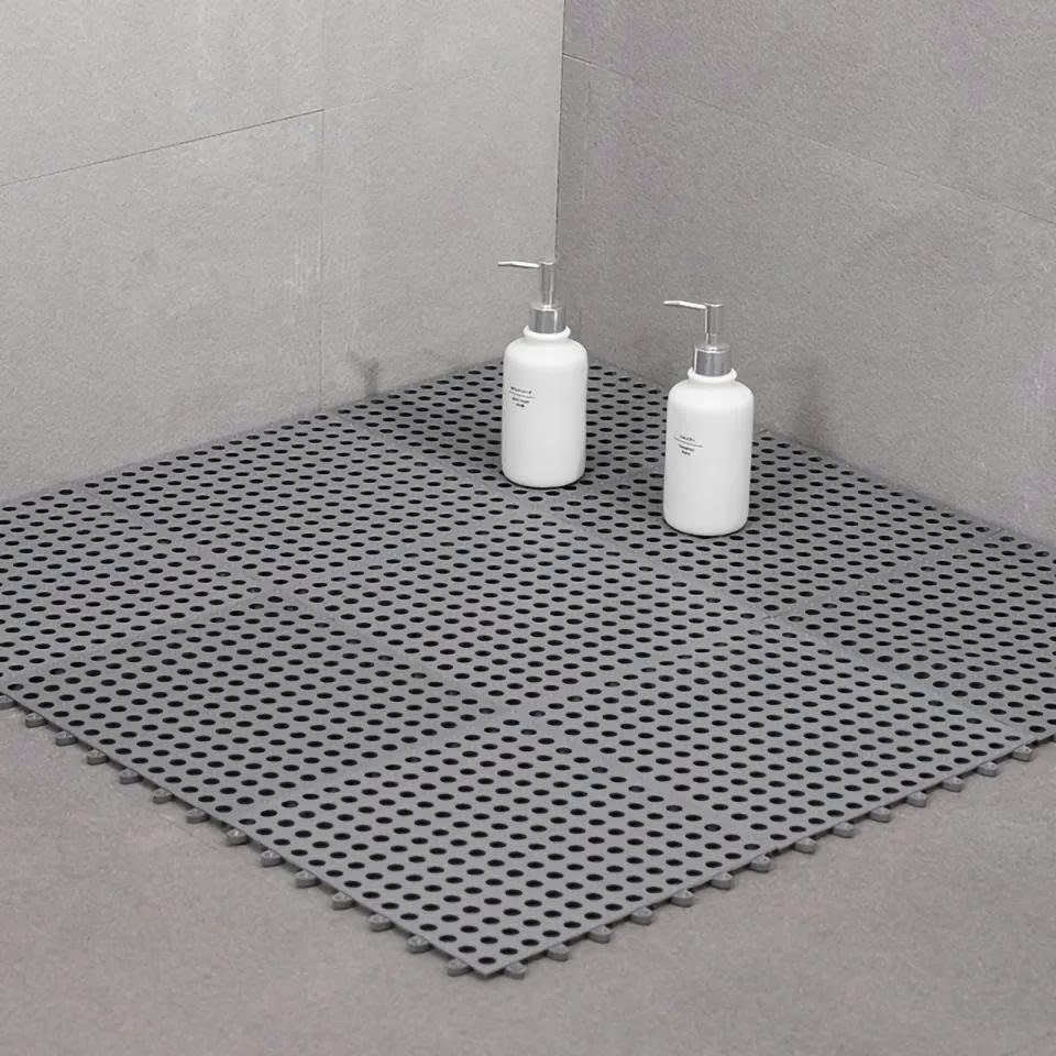 - Thảm phòng tắm nối 30x30cm tạo ma sát để chống trơn cũng như để thoát nước một cách dễ dàng, chất liệu cấu thành lên thảm là loại nhựa 3A từ Đài Loan.