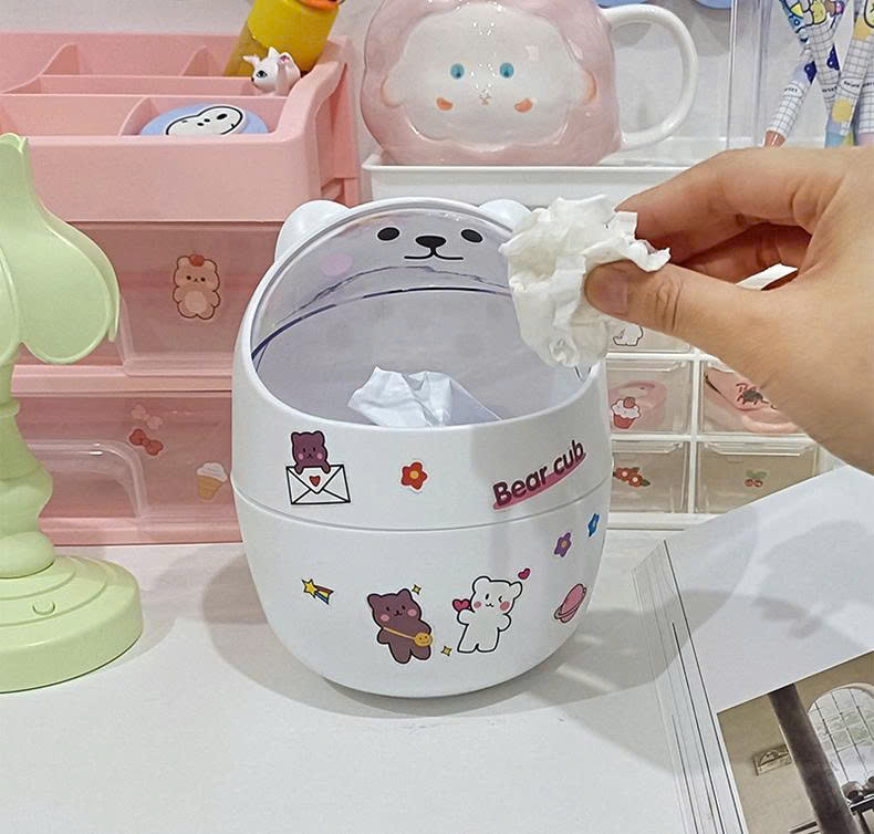 - Bạn đã bao giờ nhìn thấy chiếc thùng rác để bàn dễ thương như vậy chưa? Hãy cùng tìm hiểu về chiếc thùng rác để bàn hình gấu, thùng rác mini hình gấu, thiết kế nắp gập, dễ sử dụng, trợ thủ đắc lực cho việc dọn dẹp những chiếc thùng rác để bàn bừa bộn.