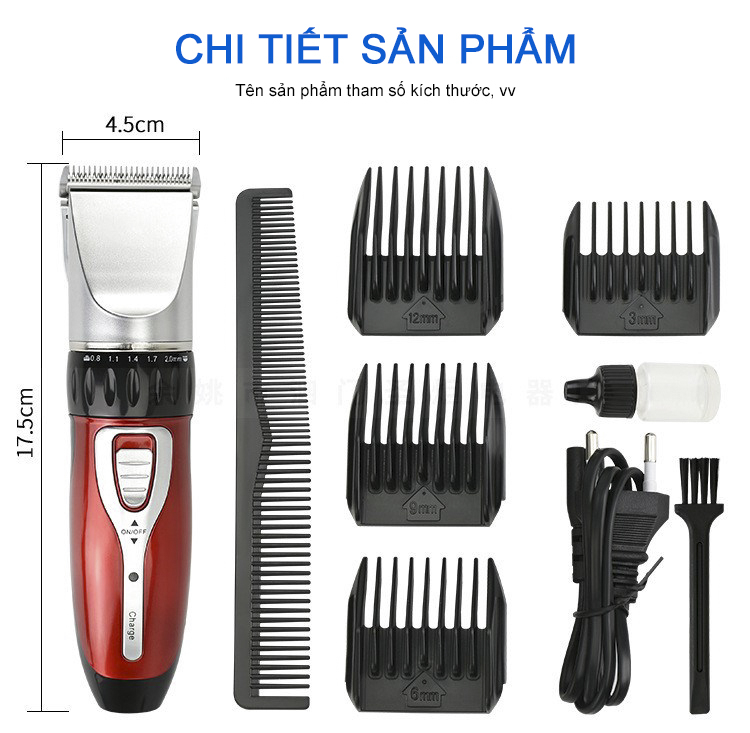 - Bộ sản phẩm bao gồm: 1 máy Jichen JC-0817, 1 dầu bôi trơn lưỡi, 1 chổi vệ sinh máy, 1 dây sạc pin, 4 cữ lược căn chỉnh độ dài tóc cắt, 1 lược chải tóc bằng nhựa cJichen JC-0817 là 1 trong những chiếc máy cắt tóc gia đình đang rất được ưa chuộng hiện nay.