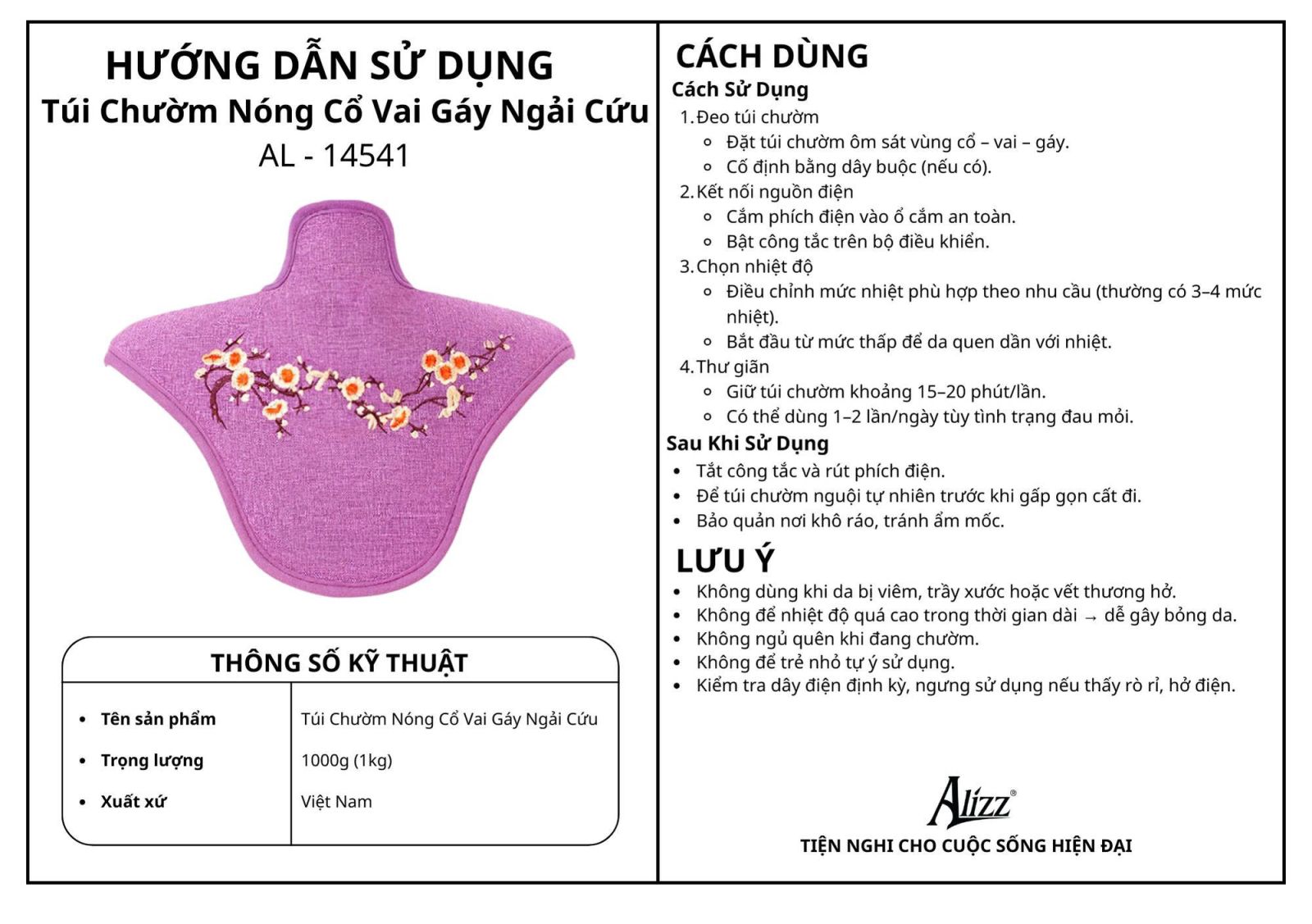 TÚI CHƯỜM NÓNG CỔ VAI GÁY NGẢI CỨU ALIZZ AL-14541